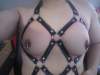 セーラー服の上着をたくしあげられ、露出した乳首には紐で繋がった洗濯バサミを挟まれる。紐の反対の一方に付いた洗濯バサミでスカートを吊り上げ下半身丸出しに。肛門にはアナルパールが埋め込まれ、紐で繋がれ壁に固定され、クリトリスは吸引機で吸い出され、その吸引機には紐を繋がれ引っ張られる。
